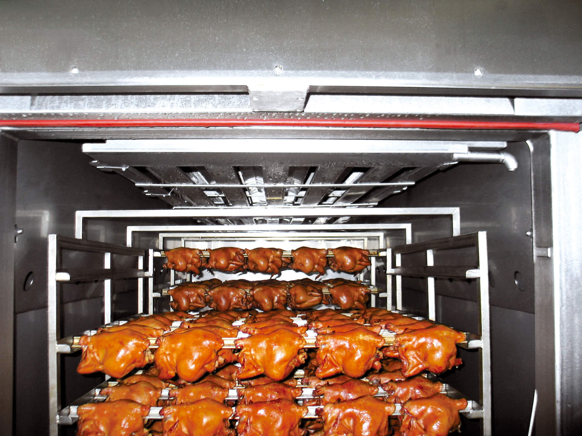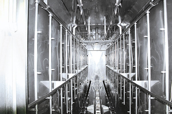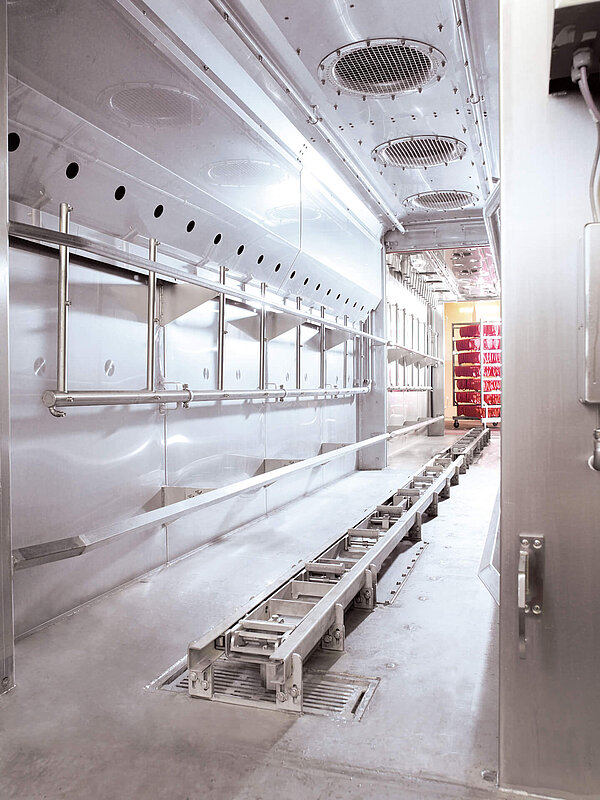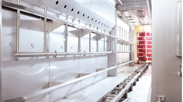 Ein wesentlicher Vorteil ist die Einsparung von Transportwegen: Das aufwendige manuelle Verfahren der schweren Kochmodule von der Koch- zur Kühlanlage entfällt – dies spart Zeit, Arbeitskraft und bietet optimale Produktsicherheit. Dank dieses Konzepts können selbst lange Koch- und Kühlprogramme vollautomatisch über Nacht ablaufen. Die Ware ist am nächsten Morgen bereit für die Weiterverarbeitung oder Verpackung.