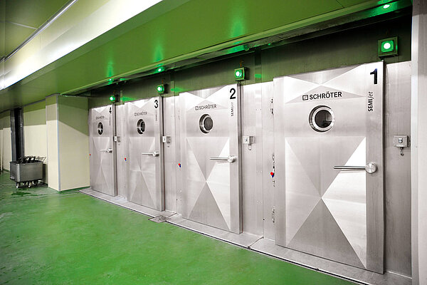 Mit einer SEMIjet®-Anlage werden Effizienz und Produktionssicherheit durch eine klare Trennung der Zonen und möglichen Zwischenzonen maximiert. Der Personalaufwand wird durch ein automatisiertes Transportsystem minimiert, das die Produkte von einer Zone zur nächsten befördert. Die Energiekosten bleiben gering, da die Prozesse in getrennten warmen und kalten Zonen ablaufen, wodurch aufwendige Temperaturwechsel innerhalb einer Zone entfallen. Die robuste Edelstahlkonstruktion gewährleistet Langlebigkeit und garantiert die Einhaltung von Hygieneansprüchen.