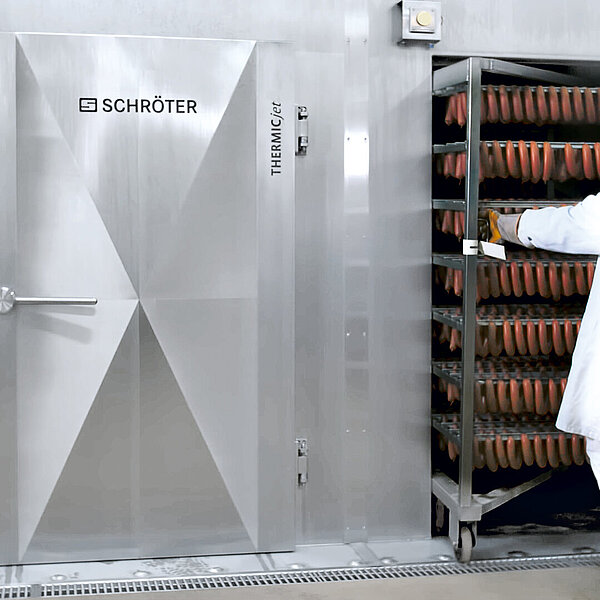 Die SEMIjet®-Anlage ist eine semikontinuierliche Durchlaufanlage und kombiniert einzelne Prozesszonen wie Heißräuchern, Kochen, Backen und Intensivkühlen in einem Anlagenkonzept.